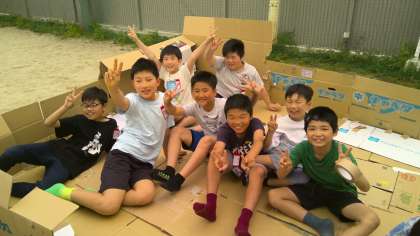 図画工作科で、段ボールを使って自分のお気に入りの場所を作りました。