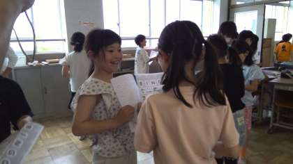 学年学活で、丸書きゲームとビンゴゲームをしました。