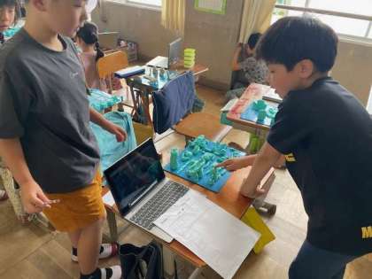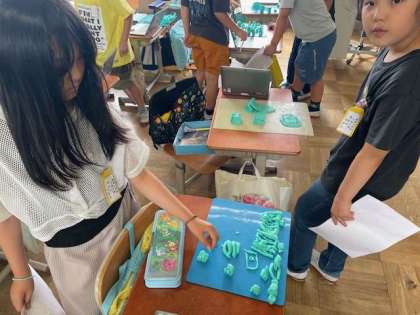 図画工作科では、「ねん土マイタウン」の学習をしました。
