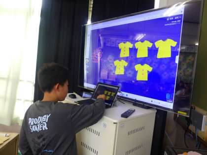 タブレットを操作しシャツの作成。