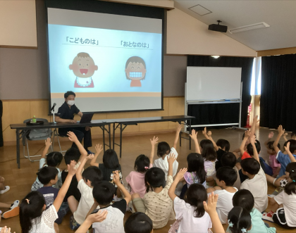 実際に歯医者さんのお話を聞いて、歯のことを学びました。