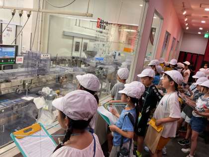 おたべ本館では、三角形に折る機械や箱詰めの機械など、どんどんと商品になっていく八つ橋を見学しました。