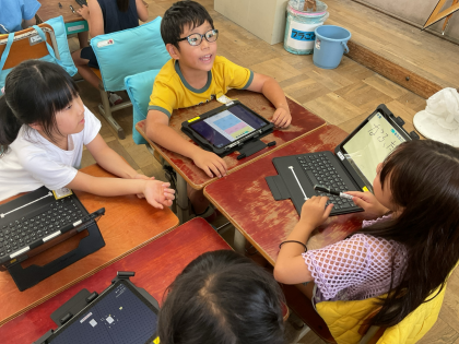 国語科の学習です。「自分たちのクラスにこんな係があったらいいな」を自分で考え、ロイロノートを使ってまとめました。その後、まとめた画面を見せ合いながらグループで意見交流をしました。意見を出し合い、よりよい係活動を自分たちで考えられるといいですね。