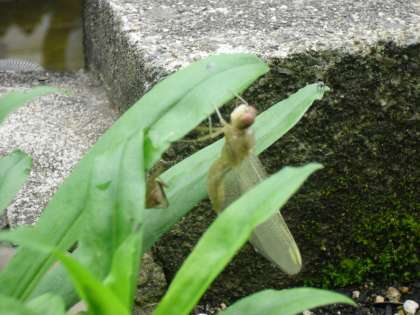 トンボが羽化しています。