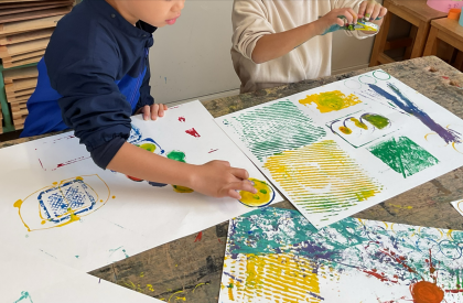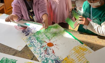 図画工作科「うつしたかたちから」の学習は、図工室で行いました。子ども達は、「ロボットに見えてきた!」「トイレットペーパーの芯を折り曲げたらハートになったよ。」とつぶやきながら楽しそうに取り組んでいました。次は、パスやペンで模様や顔を書き足します。どんな作品になるのか楽しみですね。