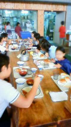 朝食を元気いっぱい食べ、今から魚つかみです!