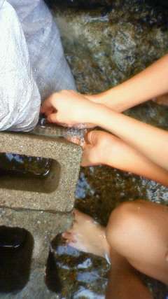 山の家の中を流れる池にイワナを放流し、1人一匹つかみ取ります!!