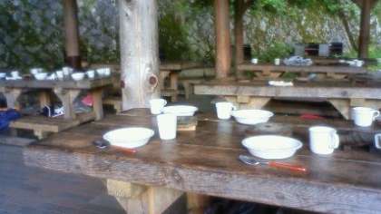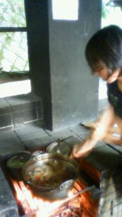 夕飯は野外炊事で作る、すき焼き風煮とご飯です!
