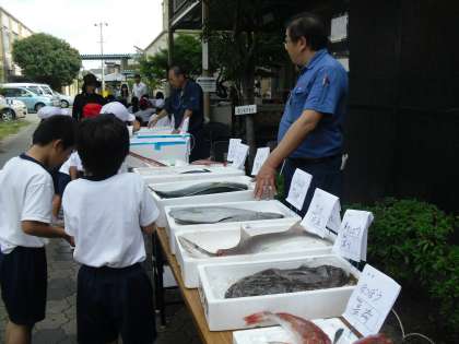生きた魚を触ったり,じゃこなどを食べたりしました。