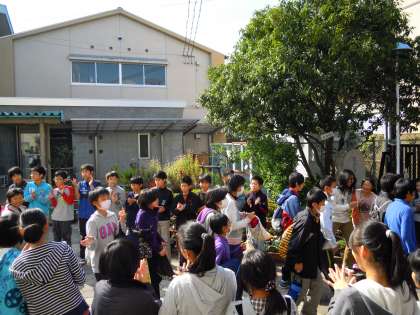 選手たちが,6年のみんなに花道で見送られ,張り切って学校を出発しました。