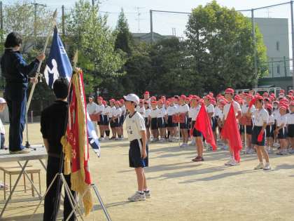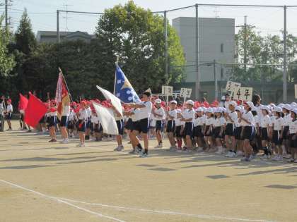 入場行進・開会式・全校ダンス(準備体操)・応援練習・閉会式の練習をしました。