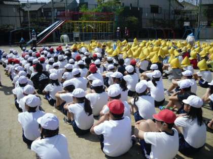 運動場の真ん中に避難し,すみやかに避難しました。先日も大きな地震がありました。訓練の大切さを学んでくれたことだと思います。