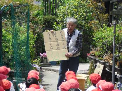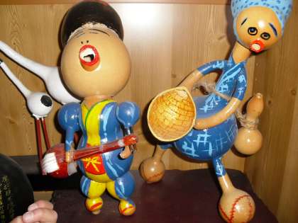 今日は地域の井上さんのお宅に伺い,ひょうたんで作った様々な作品を見せていただきました。すばらしい作品ばかりで,みんな目を輝かせてみていました。また,種類や種の事などひょうたんのことについていろいろ教えていただきました。