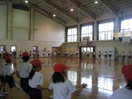 今日は,キャンプファイヤーのプログラムにあるフォークダンスの練習をしました。みんなすぐに覚え,とってもすてきな笑顔でおどっていました。活動の楽しみがまた一つ増えました。