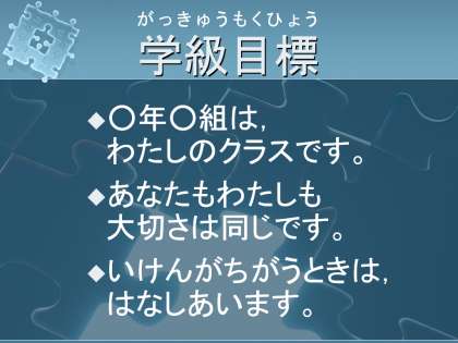 「○年○組は私のクラスです。」とみんなが言え