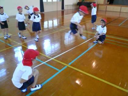 体育の「とびくらべ」で,ゴムとびをしました。
