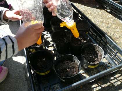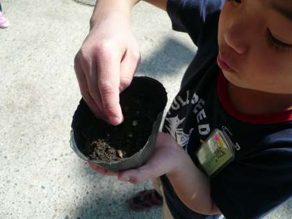 自分で育ててみたいと思うものを選んで,1人ずつ黒ポットに種をまきました。