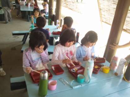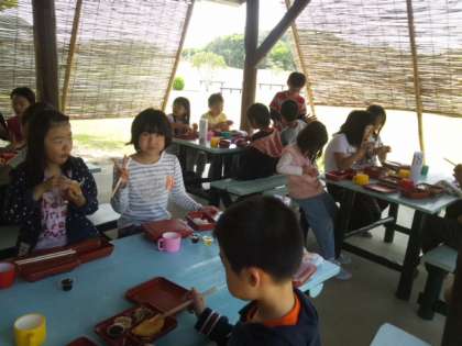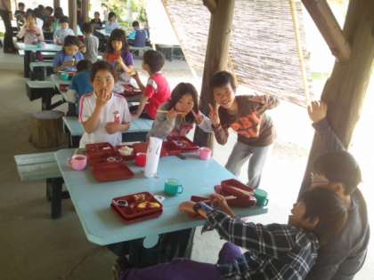 午後の宮崎浜での磯観察に向けて、少し早めのお昼御飯にしました。