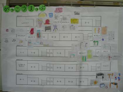 そして,学校マップにカードを貼りつけて,オリジナルの学校マップを作りました!!