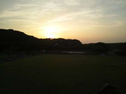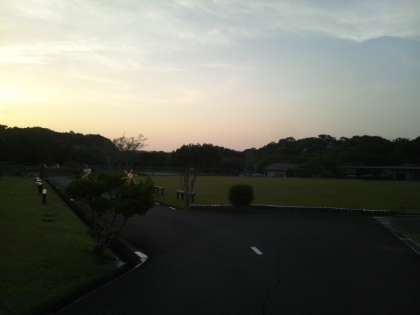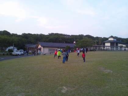 夕食を終えた子どもたちは暮れかかった芝生広場で遊んでいます。