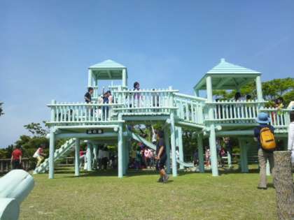 その後、「浦山ラリー」のコースを散策して「山の砦」で遊びました。360度のパノラマで、吹き抜ける風がとても爽やかでした。