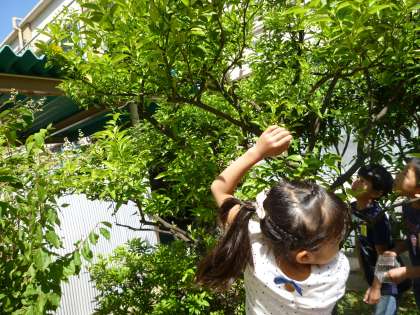 学校の柚子の木にアゲハの卵や幼虫がいないかも必死に探しています。