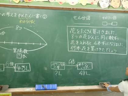 今日は算数で『線分図』を使って問題を整理し考え,式を立てる勉強をしました。