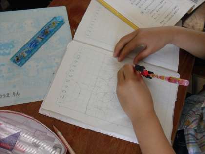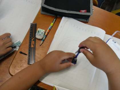 コンパスの上の部分を親指と人差し指で持って・・・くるっと・・・回す・・・んですが,これがなかなかうまくいきません。