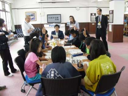 昼前には,代表者会議が行われました。各代表が集まり,課題とこれからの目標などを話し合いました。子どもたちの仕事に対する真剣な目が,大人に見えました。