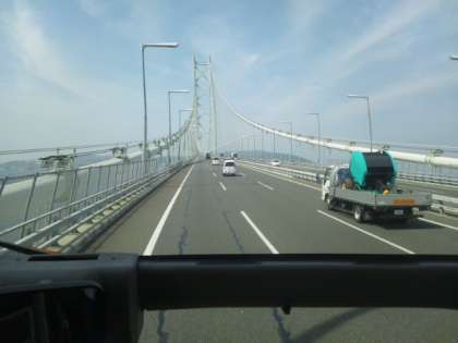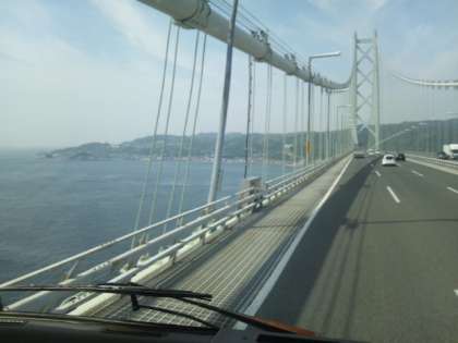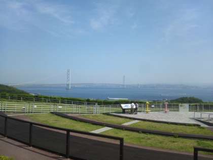 明石海峡大橋を渡り、淡路サービスエリアで休憩です。少し霞んでいますが、よく晴れて良い景色です。
