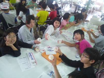 乳しぼり体験の次は、バター作りです。