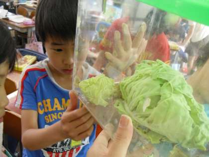 今日は,授業の途中でたまたま蛹から出てくるチョウを発見しました。