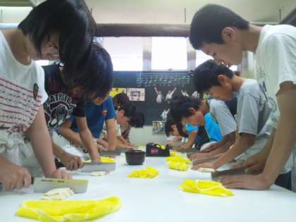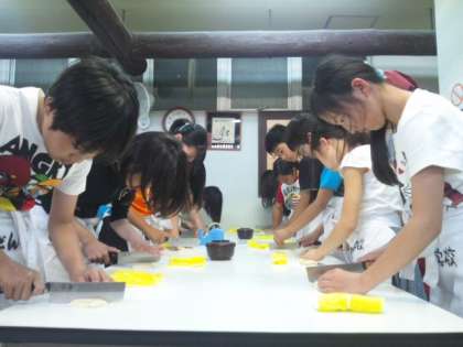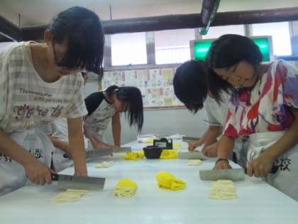 中野うどん学校の講師さんの慣れた解説とアシスタントの方々の手伝いで、真剣な作業が続きます。