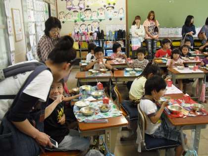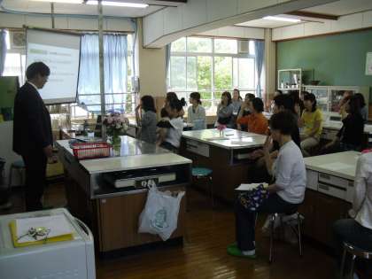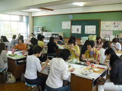 1年生保護者対象で給食の試食会が行われました。教育委員会より尾松廣明指導主事をお迎えして,京都市の給食の特徴についてお話していただきました。食材を京都府内産にし,厳正な残留農薬や放射能検査をして,原則はすべて手作り,必ず加熱処理を施すという食の安全に対する姿勢を聞き,参加者からは,「安心して食べられるものだとわかりました。」との声が出ていました。その後,教室の様子を見て,実際に試食をしました。久しぶりの給食でしたが、おいしかったとの意見が多かったです。