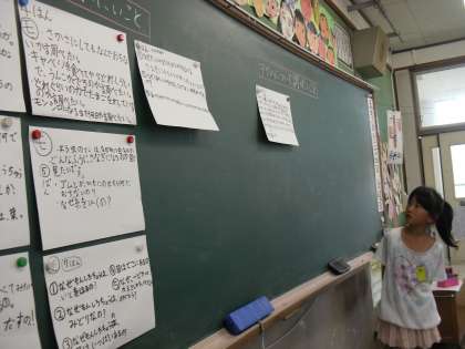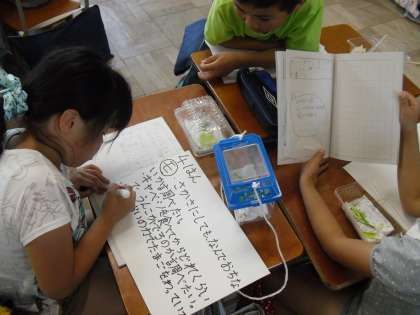 今日は,今育てているモンシロチョウ・アゲハチョウについて,不思議に思っていること,調べてみたいことを班で伝えあいました。
