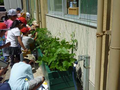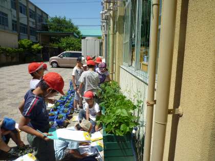 生活科で育てている野菜を観察して,文と絵で記録しています。
