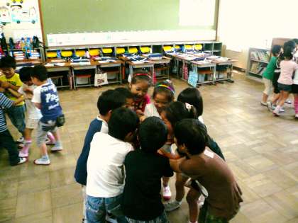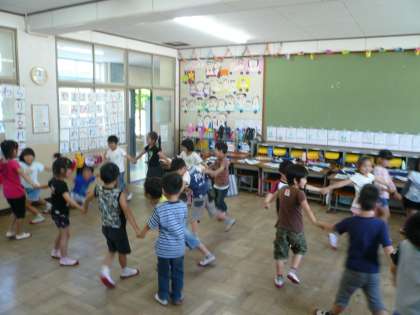歌に合わせて大きくひらいたり,とても小さくつぼんだり…。