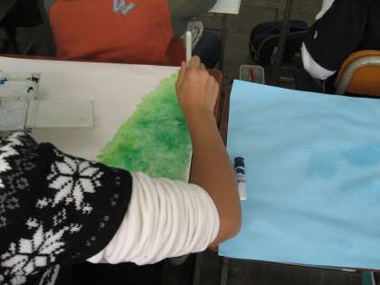 写真は,絵の構成を考え,描きたい場面づくりを行っているところです。