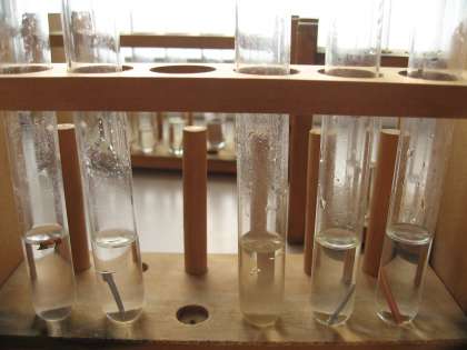 アルミニウムや鉄くぎが,泡やシュワシュワと音を出しながら反応する
