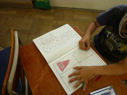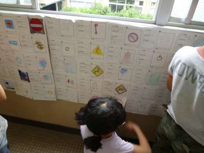 今日は,みんなで集めた記号を見ながら調べてみたいテーマを決めて,報告文を書き始めました。