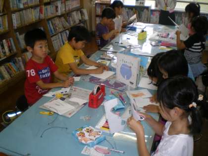 今回は,初めにクローバーの会のお母様方の読み聞かせの後,モビール作りに挑戦しました。説明を聞きながら,みんな楽しく,けれど真剣に作業を進めました。低学年の子どもたちにとってバランスをとることは難しいと思ったのですが,予想以上にみんな上手に作ることができました。