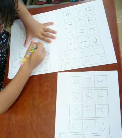 見本の字を見ながら,とめ・はね・はらいに気をつけて、一字一字丁寧に書いていました。ゆっくり時間をかけて書いた字を見て,