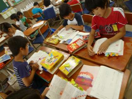 国語科は『海をかっとばせ』というお話を学習しています。今日は意味を調べたり,初めて読んだ感想を発表したりしました。