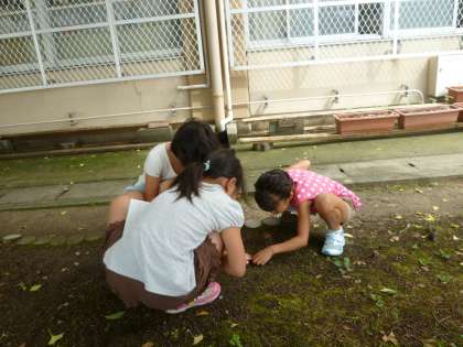 今日は理科の学習で,外に植物や生き物を探しに行きました。