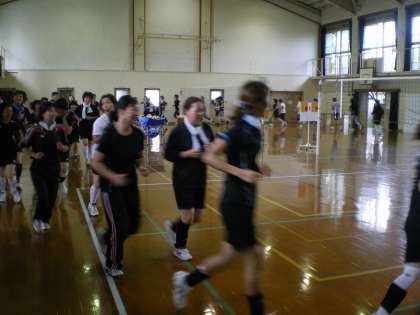 今日の午前9時から,PTA主催による学年対抗バレーボール大会が体育館で行われました。