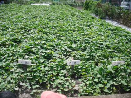 畑のサツマイモの葉っぱが大きく育っていました。畑一面,葉で埋め尽くされて,土が見えません。きっと,土の中ではサツマイモが大きく育っていることでしょう。サツマイモの花を見つけました。めずらしいですね。