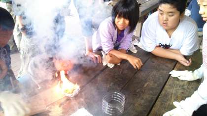 みんな苦労しながら、班で協力し、火をおこすことができました。