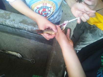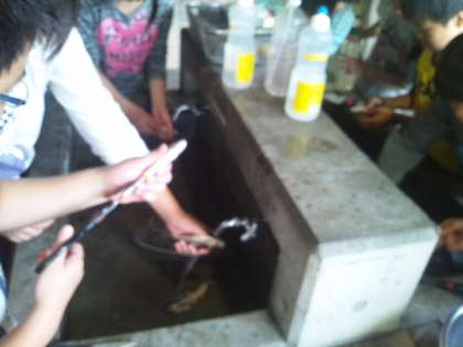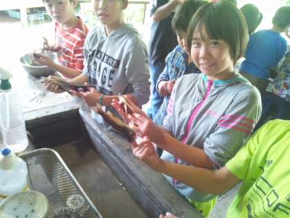 沢山の虫の命を食べて育った魚の命を、今度は子どもたちが「いただきます」。