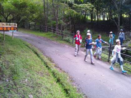 五年生全員、遅れる子もなく歩ききり、予定よりかなり早く花背山の家の敷地の最上部に帰って来ました。