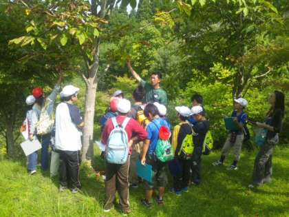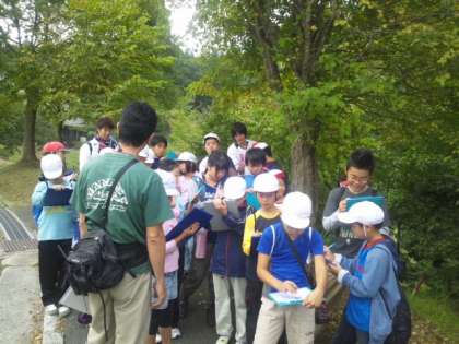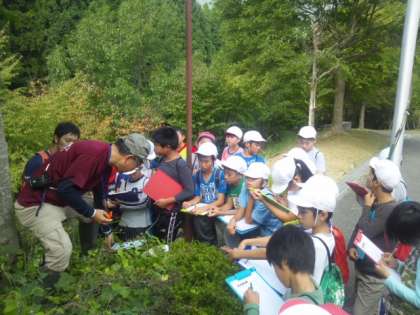 自然散策グループは山の家の先生から説明を聞いて回ります。